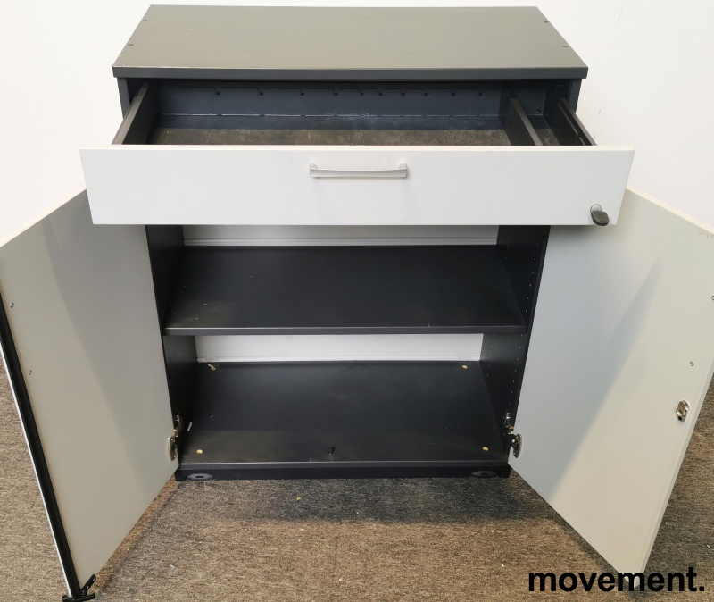 / lys grå front, 2 permhøyder + skuff, 80cm bredde, 99cm høyde, brukt med noe slitasje