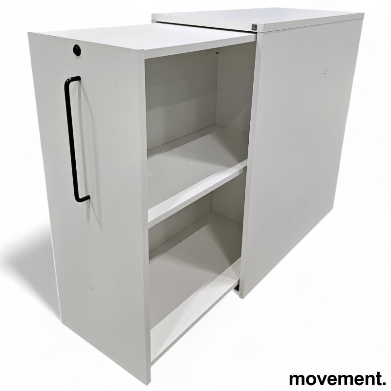 hvitt med sort håndtak, dybde 80cm, venstre side av skrivebord, pent brukt