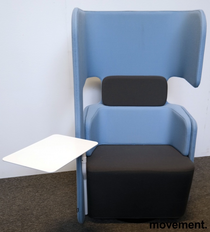 lyseblått, modell Podseat fra Martela med høy rygg og bord, bredde 70cm, pent brukt