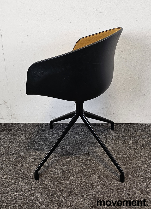 armlene Sort stoff (Gabriel Fame), nakkepute i sort skinn, sort fotkryss, Pent brukt