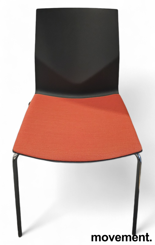 modell FourCast Line i mørk grå plast, sete i rød / oransje stoff, pent brukt
